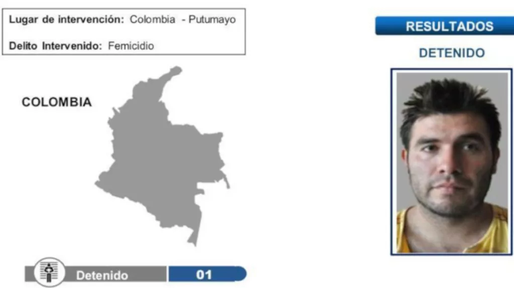 En un trabajo articulado con la Policía ecuatoriana y la Interpol, el hombre fue detenido en el municipio de La Hormiga, en el departamento de Putumayo (fronterizo con Ecuador), luego de cinco años en los que evadió a la Justicia.
