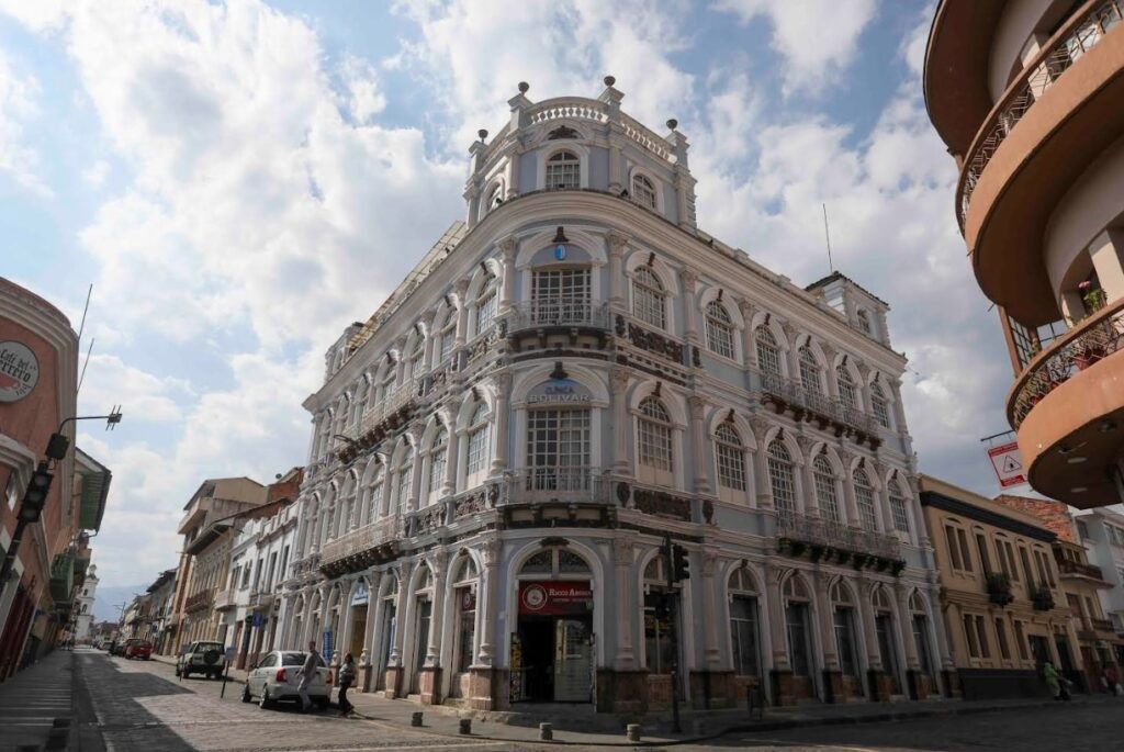 En la intersección de las calles Simón Bolívar y Juan Montalvo, la Clínica Bolívar resplandece con su estructura imponente y su estilo neoclásico. Es el reflejo de la decoración de los períodos renacentistas de Luis XIV y Luis XV.
