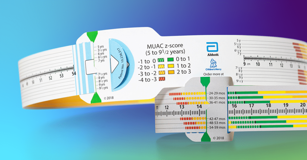 Abdel desarrolló una herramienta económica de papel que se asemeja a una cinta métrica tradicional, que lleva el nombre de “MUAC z-score” e incluye indicadores codificados por colores específicos para la edad, que indican si el niño se encuentra en riesgo de malnutrición.