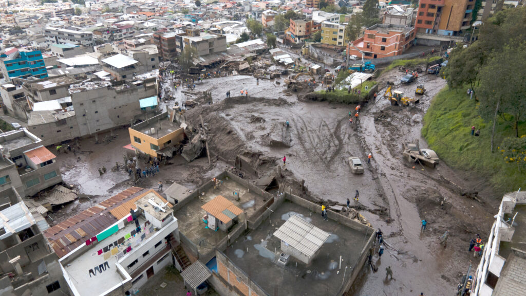 A Jacqueline Guamán, parte del equipo de rescatistas de la Cruz Roja, lo que más le llama la atención es la fuerza con la que el lodo arrastró a los vehículos, del interior de un auto que terminó en una casa a la que no le pertenecía rescataron a una familia de tres personas, estaban heridas, pero vivas.
