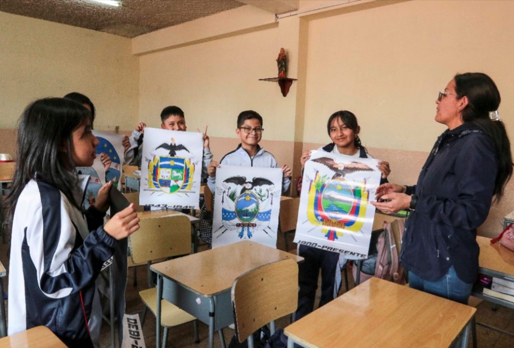 “El escudo representa la independencia, la fortaleza y la historia del Ecuador. En las clases de Cívica enseñamos a los niños los elementos que lo componen y su significado, porque eso fortalece la identidad nacional”, afirmó.