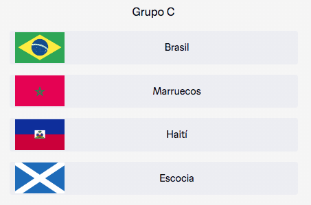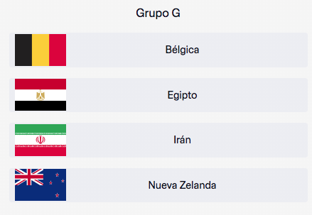13:30 Brasil Grupo C, Alemania E, Países Bajos F, Bélgica Grupo G, España Grupo H, Argentina Grupo I, Francia Grupo J, Portugal Grupo K y Inglaterra Grupo l.