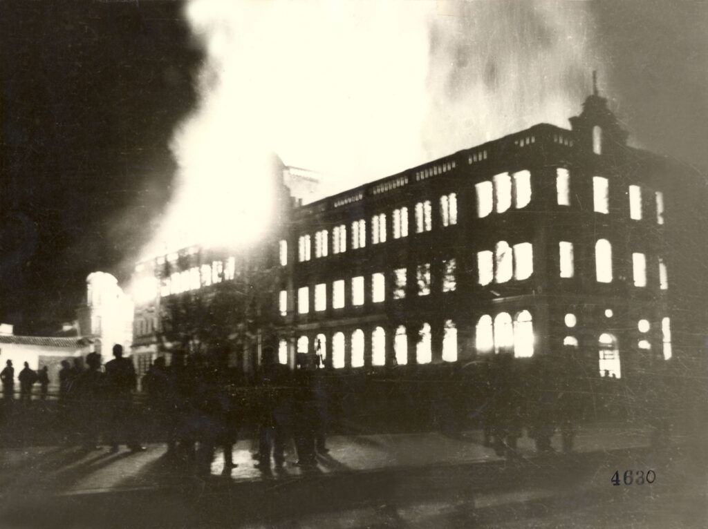 “… después de la inspección reglamentaria en los 29 años de existencia del Instituto, todo estuvo en calma. Retirándome a mi sala de estudio a las 12h15, un padre me avisa que hay llamas en el corredor que daba al museo, pronto salí al corredor, me di cuenta que por la ventana del patio habían echado una bomba incendiaria. Pronto bajé para despertar a la comunidad, llamar a los Bomberos; en 5 minutos regresando al lugar del siniestro, otras bombas incendiarias fueron lanzas desde la calle en la escalera de madera; en pocos minutos las llamas envolvieron el techo de la fachada que da a la Iglesia…”.