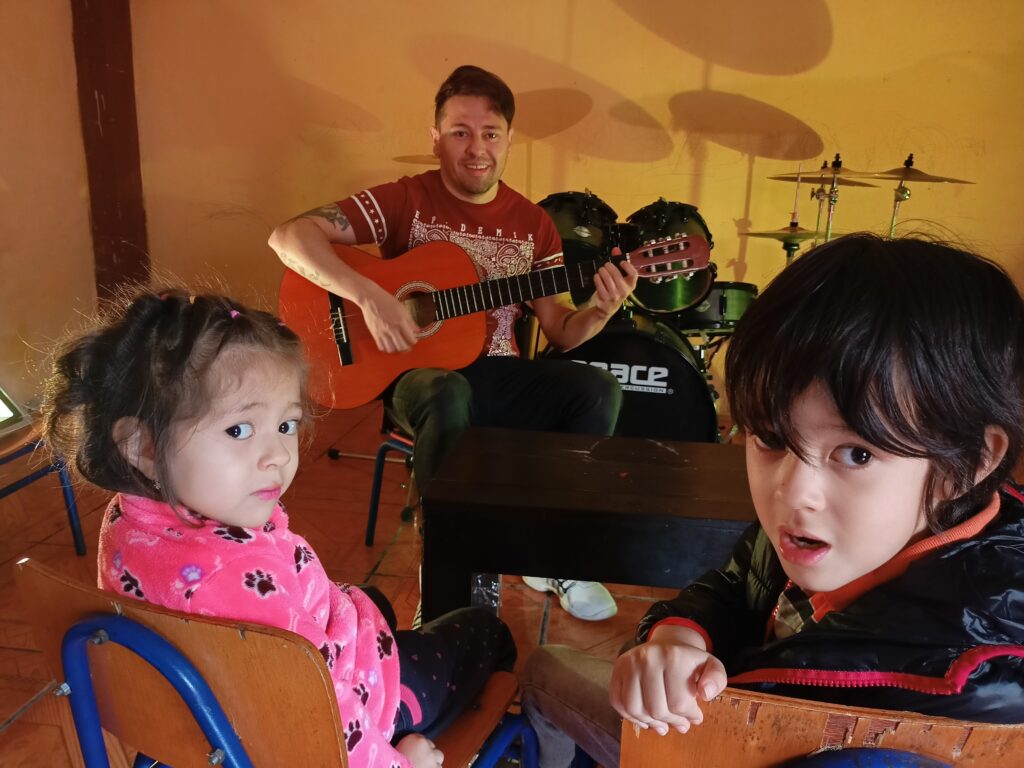La sala de Manolo Anguisaca sirve como área de ensayo y como aula de su escuela de música. El artista nació en Macas, provincia de Morona Santiago, pero es de corazón pauteño. Manolo -a sus 36 años de edad, casado y con tres hijos- alcanzó hace pocas semanas un premio nacional tras años de perseverancia con alegrías y tristezas.