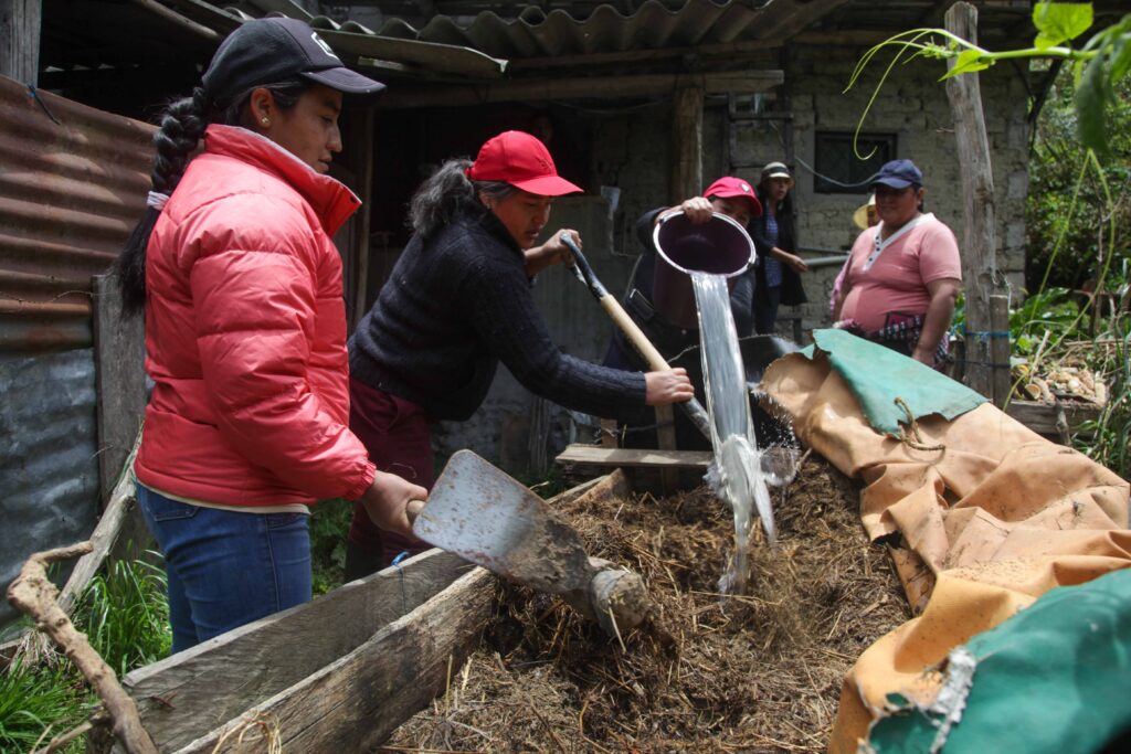 En sus labores diarios no desperdician casi nada de agua. Dolores Palaguachi, de 45 años de edad, junto con sus compañeras de la asociación “Virgen del Cajas”, acostumbra a recoger en baldes el agua de riego que usan también para lavar los platos y la ropa. Luego la reutilizan en la elaboración de abono.