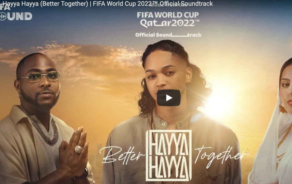 El cantante nigeriano Davido celebró este viernes el anuncio de que la FIFA usará su canción «Hayya Hayya (Better Together)», interpretada con la estadounidense Trinidad Cardona y la catarí Aisha, para la banda sonora del Mundial de Catar de 2022.