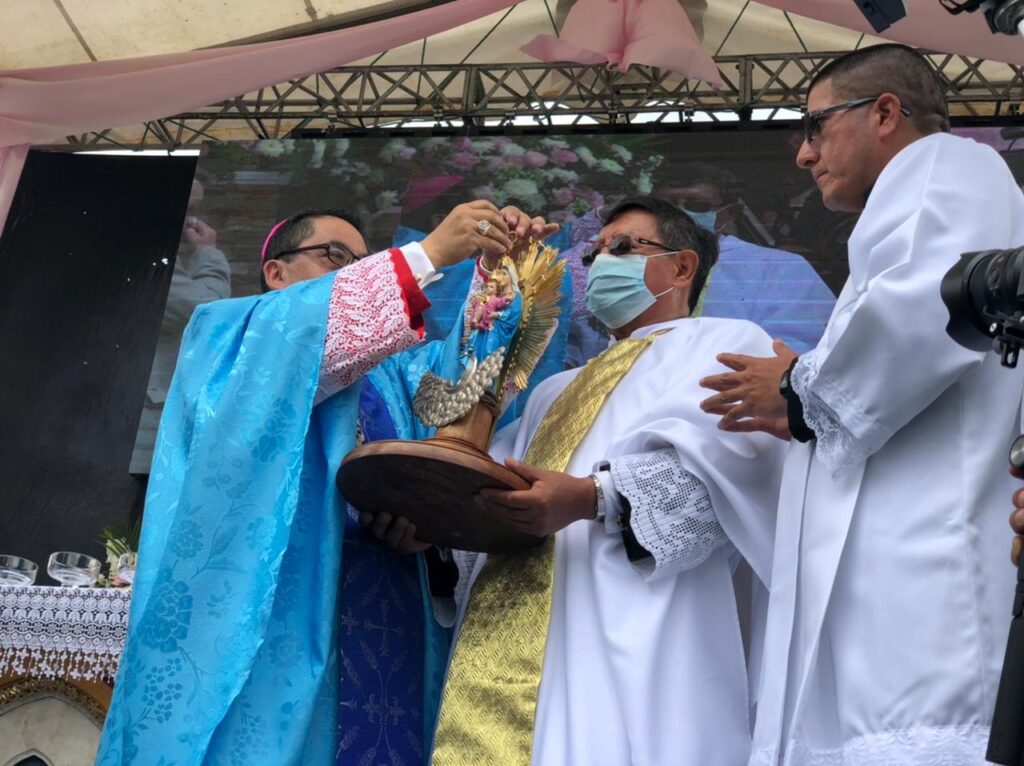 En su intervención monseñor Oswaldo Vintimilla resaltó que la coronación pontificia de la Virgen del Rocío fue un acto “largamente soñado y aplazado debido a la pandemia de la COVID-19”.