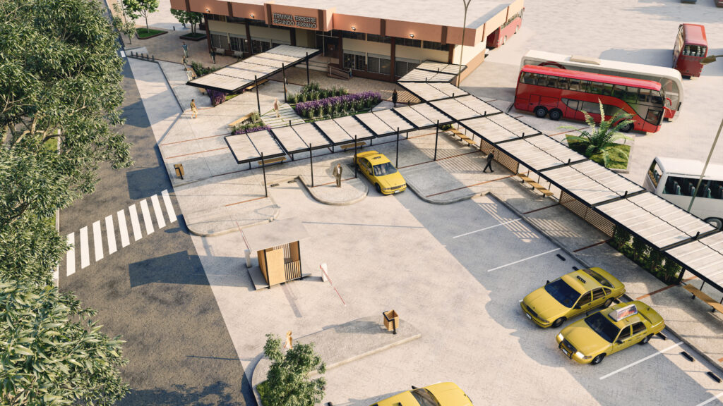 La municipalidad de Azogues contrató a una profesional, a través del Portal de Compras Públicas, para intervenir parte del área frontal de ingreso a la terminal, así como la zona que actualmente se utiliza como estacionamiento de las compañías de taxis y camionetas de carga.