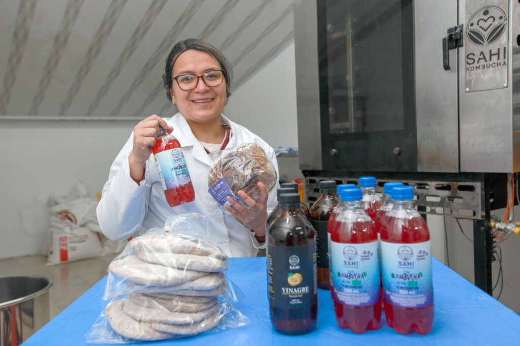 “La kombucha es una bebida probiótica fermentada, no pasteurizada, entre sus beneficios están la alta cantidad de complejo B, de vitamina C y de antioxidantes, pueden consumirla las personas diabéticas ya que les ayuda a nivelar el azúcar en la sangre”, explicó Samantha, desde la fábrica donde día a día trabaja junto a su esposo Paulo, quien es también gerente general de la industria de alimentos y bebidas “Sahi”.