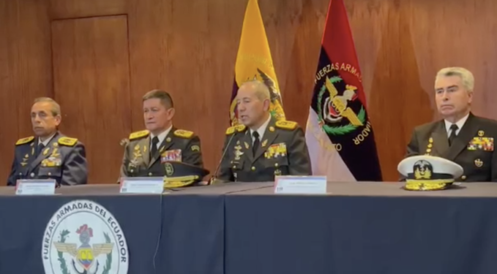 Nelson Proaño, jefe del Comando Conjunto de Fuerzas Armadas, en una rueda de prensa realizada este miércoles, 17 de agosto, respecto a la publicación dijo que no fueron notificados sobre el tema ni conoce los nombres de a quiénes les fue retirado el documento.