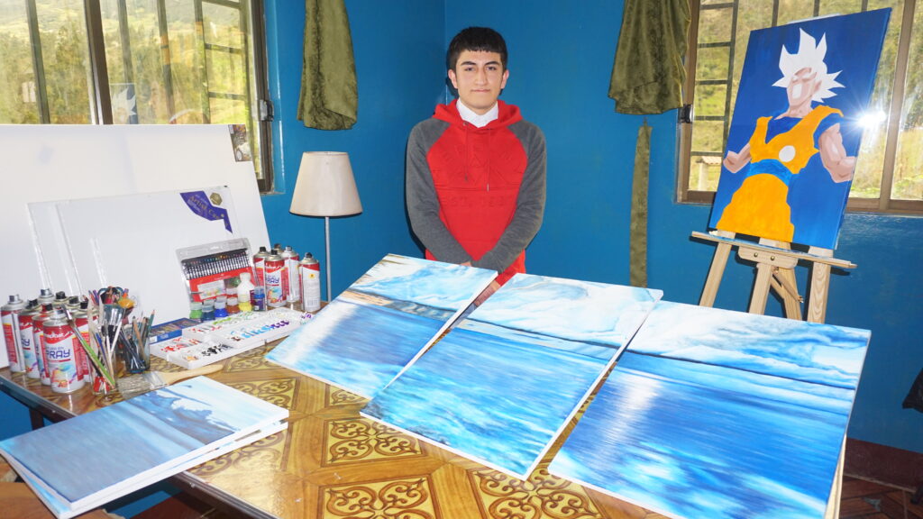 – Steven Vargas es el mayor de tres hermanos. Su talento le ha permitido ganar concursos organizados por establecimientos educativos de Chordeleg.