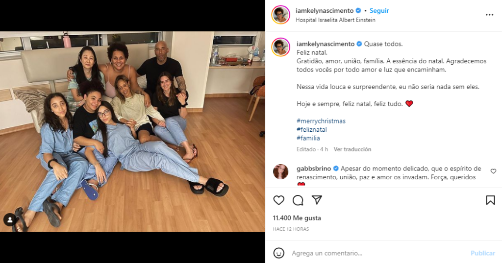 «Casi todos. Feliz Navidad. Agradecimiento, amor, unión, familia… La esencia de la Navidad. Agradecemos a todos ustedes por todo el amor y la luz que nos dirigen. En esta vida loca y sorprendente, yo no sería nada sin ellos. Hoy y siempre: feliz Navidad, feliz todo», afirmó Nascimento en su publicación.