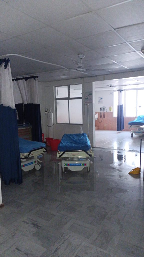 El pedido lo hizo tras la publicación de imágenes y videos en redes sociales difundidas este miércoles, 22 de febrero de 2023, donde se muestra cómo se filtraba gran cantidad de agua en diversos espacios del hospital: junto a las camillas y en estaciones de enfermería.