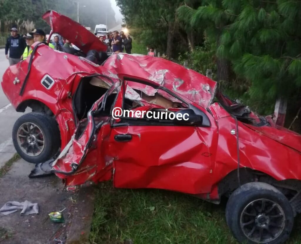 Un vehículo Chevrolet Aveo, de placa PBT-6726, que circulaba por la vía Cuenca – Loja, cerca de La Paz, jurisdicción de la provincia de Azuay, perdió pista, volcó y terminó estrellándose contra un árbol la tarde de este domingo 28 de mayo de 2023. Dos personas quedaron atrapadas entre los hierros retorcidos del liviano vehículo.