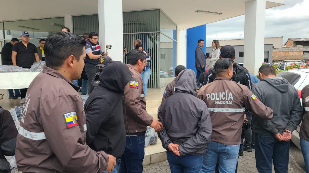 Los presuntos integrantes de la agrupación delictiva dedicada al robo de accesorios de vehículos fueron detenidos, la madrugada del jueves 1 de junio de 2023, durante el operativo «Firmeza 108» ejecutado por la Policía Nacional en coordinación con la Fiscalía del Azuay.