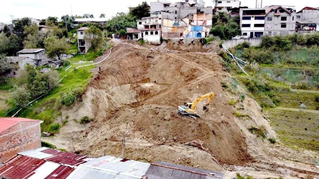 La Dirección de Gestión de Riesgos (DGR) y la Dirección de Obras Públicas, del Municipio de Cuenca, reanudaron la construcción de terrazas en el barrio Los Pinos, al noroeste de la ciudad.