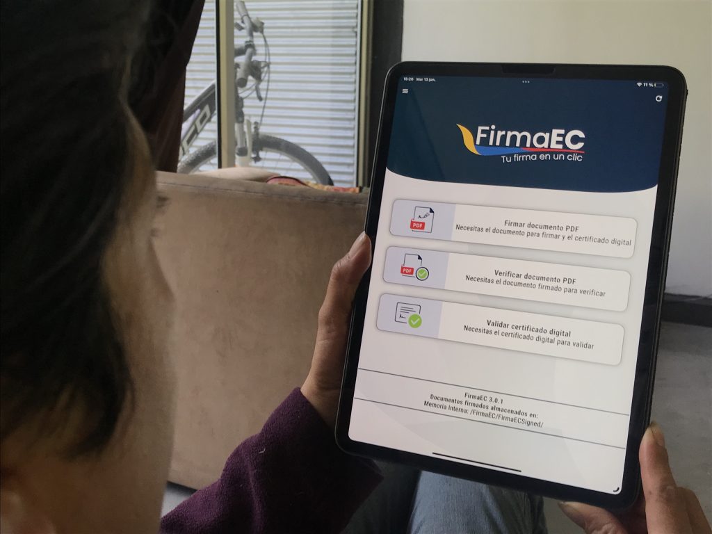 Con el aplicativo, los usuarios pueden firmar documentos PDF, verificar la validez del trámite electrónico y validar los certificados digitales de manera rápida, segura y desde cualquier lugar. También es válido para firmar documentos generados desde el Sistema de Gestión Documental Quipux.