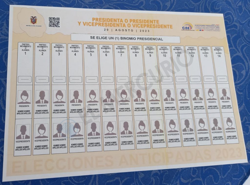 El Consejo Nacional Electoral afina detalles para las elecciones anticipadas de agosto. Este jueves 22 de junio de 2023 presentó el diseño de las cuatro papeletas que los ecuatorianos recibirán.