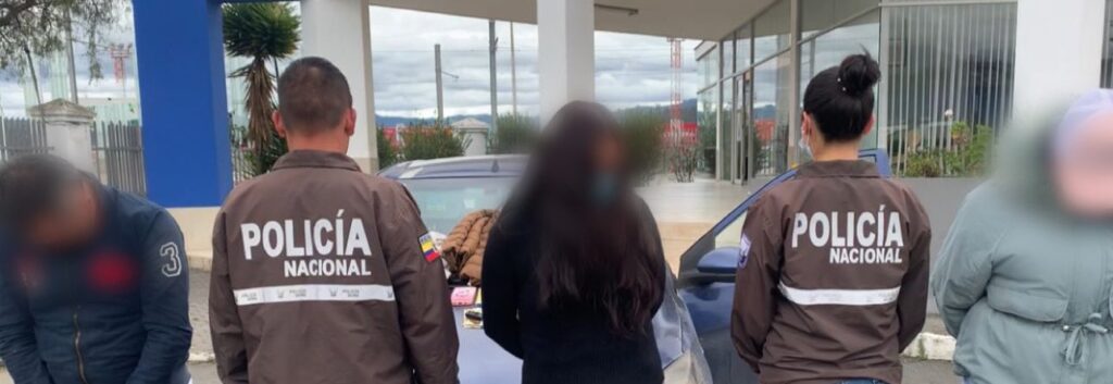 Los agentes de la Policía Nacional persiguieron a los involucrados y los detuvieron en el sector de Totoracocha, mientras se encontraban dentro de un vehículo. En su poder encontraron tarjetas de entidades bancarias sin nombres y otras que pertenecían a la víctima y a varias personas. Además, se incautó dinero y prendas de vestir que utilizaban para despistar a los usuarios.