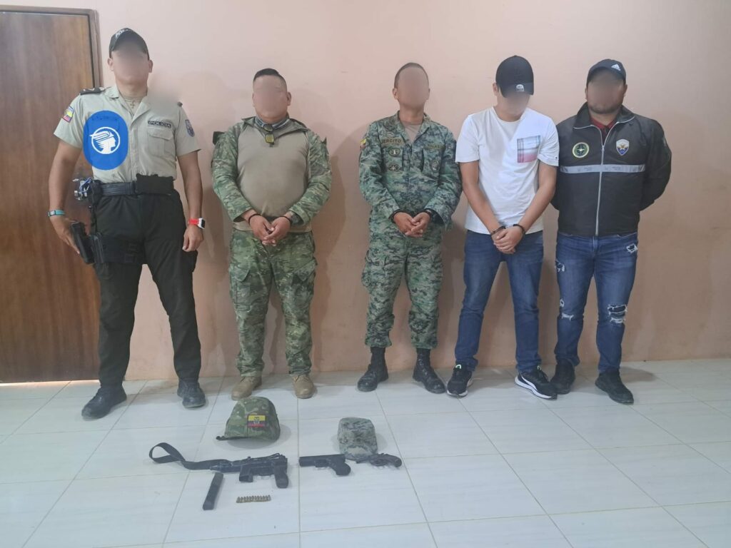 Agentes de la Policía Nacional fueron alertados sobre la presencia de ciudadanos que portaban armas de fuego y vestían uniformes de similares características a los que utiliza el personal del Ejército Ecuatoriano. Por lo que alrededor de las 11:00 se dirigieron hasta las calles Rubén Guerrero y Troncal de la Costa, del cantón Camilo Ponce Enríquez para verificar el hecho.