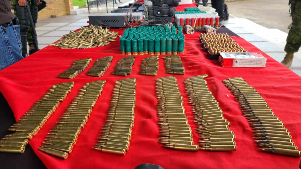 “Sorprende el decomiso de alimentadoras de fusiles y munición de 9 milímetros. Estas municiones corresponden a armas de alto calibre”, explicó.