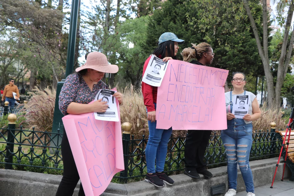 Quienes participaron del plantón portaron carteles con frases que decían: “Ayuda para Marcela”, “Marcela te queremos de vuelta”, “Agilidad en las investigaciones”, entre otras consignas.