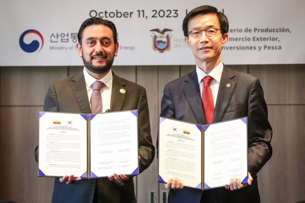 Tras seis años de paralización de las negociaciones, el Gobierno ecuatoriano concretó el 10 de octubre del 2023 una prefirma del Acuerdo Estratégico de Cooperación Económica entre Ecuador y Corea del Sur (SECA, por sus siglas en inglés); el cual, según el régimen, permitirá que el 98,8 % de actual oferta exportable ecuatoriana tenga beneficios arancelarios a su ingreso al país asiático.