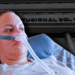 Compareció a través de videconferencia desde su cama, en la que estuvo asistida por respiración artificial y cuidada a cada momento por su esposo.