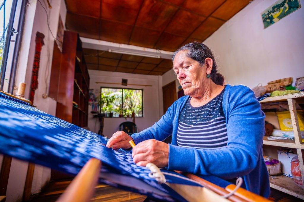 Carmen Orellana, tejedora del Ikat, tiene previsto presentar una macana inspirada en la orquídea de Gualaceo.
