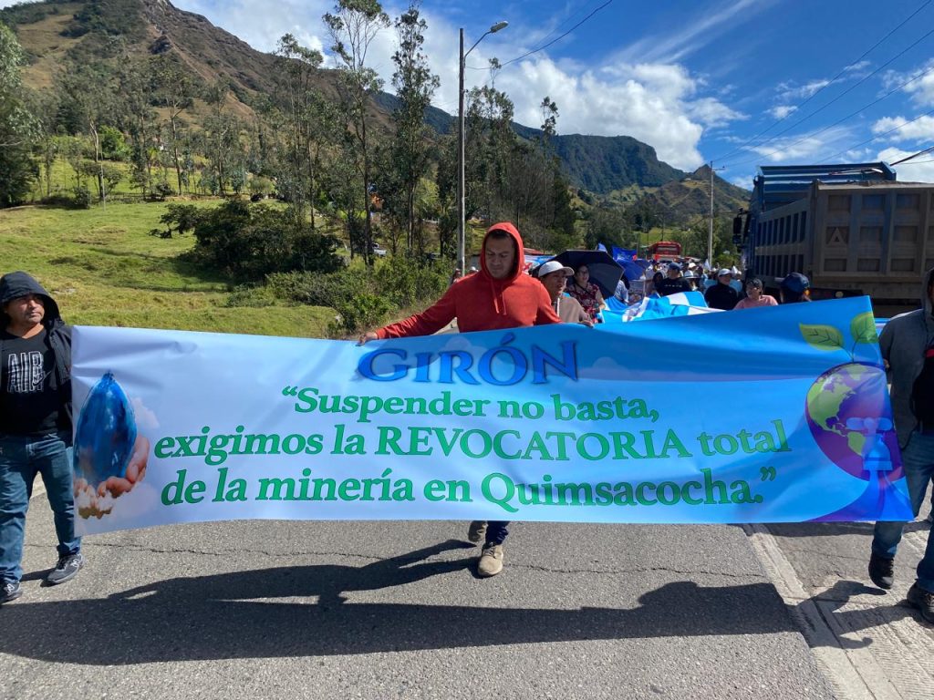 El cartel principal que encabezó la marcha señala que la suspensión de la licencia no es suficiente, que se requiere la revocatoria total de la concesión minera.