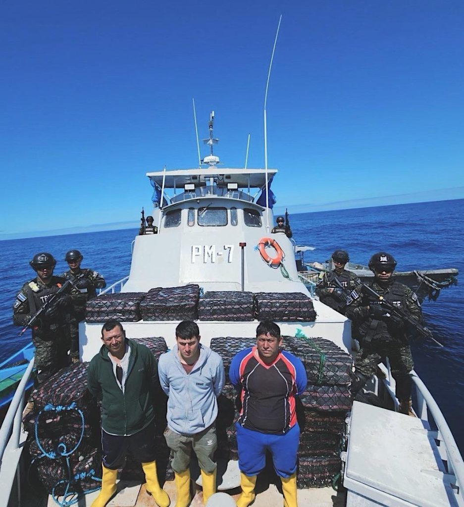 La Marina Nacional de El Salvador interceptó, a 1,150 millas náuticas (2,130 kilómetros) de sus costas, una embarcación tripulada por tres ciudadanos de Ecuador.