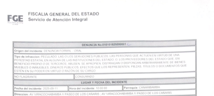 Asimismo, ayer se presentó formalmente la denuncia ante la Fiscalía para que se inicie la investigación y se solicitó que la Contraloría realice un examen especial.