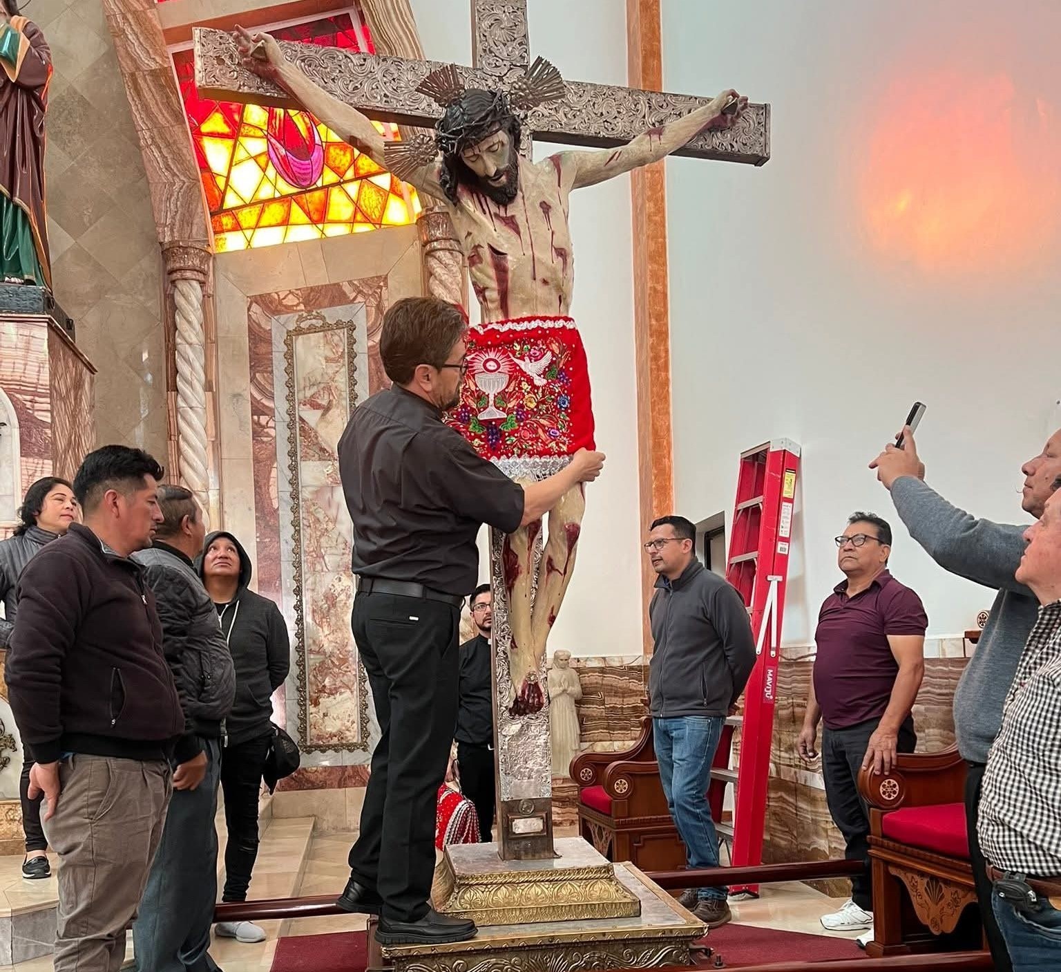 La imagen del venerado Señor de Girón descendió del altar mayor hacia la nave central de la Iglesia Matriz el 3 de octubre de 2025.