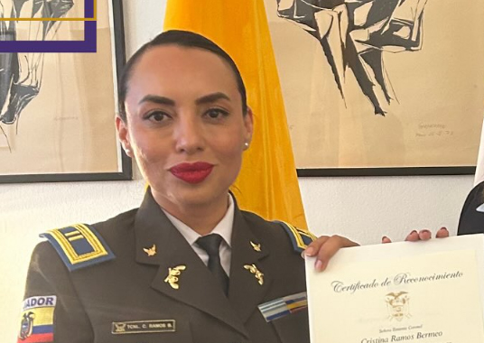 Hace poco, la Embajada del Ecuador en Francia entregó un reconocimiento a la Teniente Coronel Cristina Ramos Bermeo.