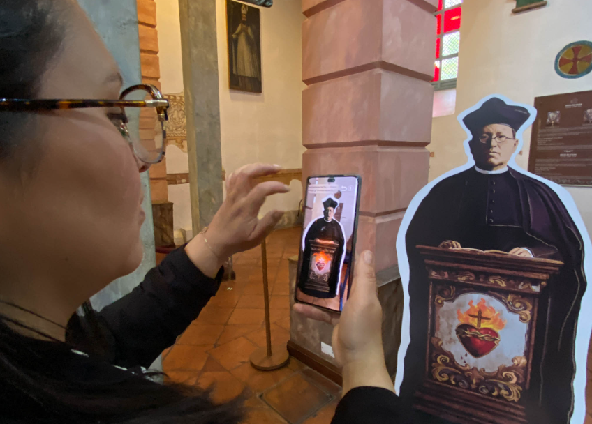 La muestra combina arte tradicional con tecnología de realidad aumentada, permitiendo al público “interactuar” simbólicamente con el sacerdote a través de dispositivos digitales.