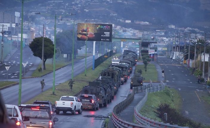 La mañana de este 14 de octubre del 2025 el convoy del Gobierno llegó a Otavalo, ciudad en la que la fuerza pública se enfrentó a los manifestantes.