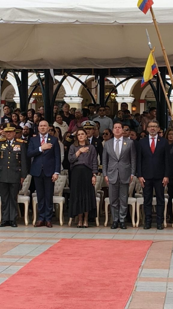 Pinto asistió acompañada por el gobernador del Azuay, Xavier Bermúdez, y el ministro de Defensa, Gian Carlo Loffredo, junto a otras autoridades civiles y militares.