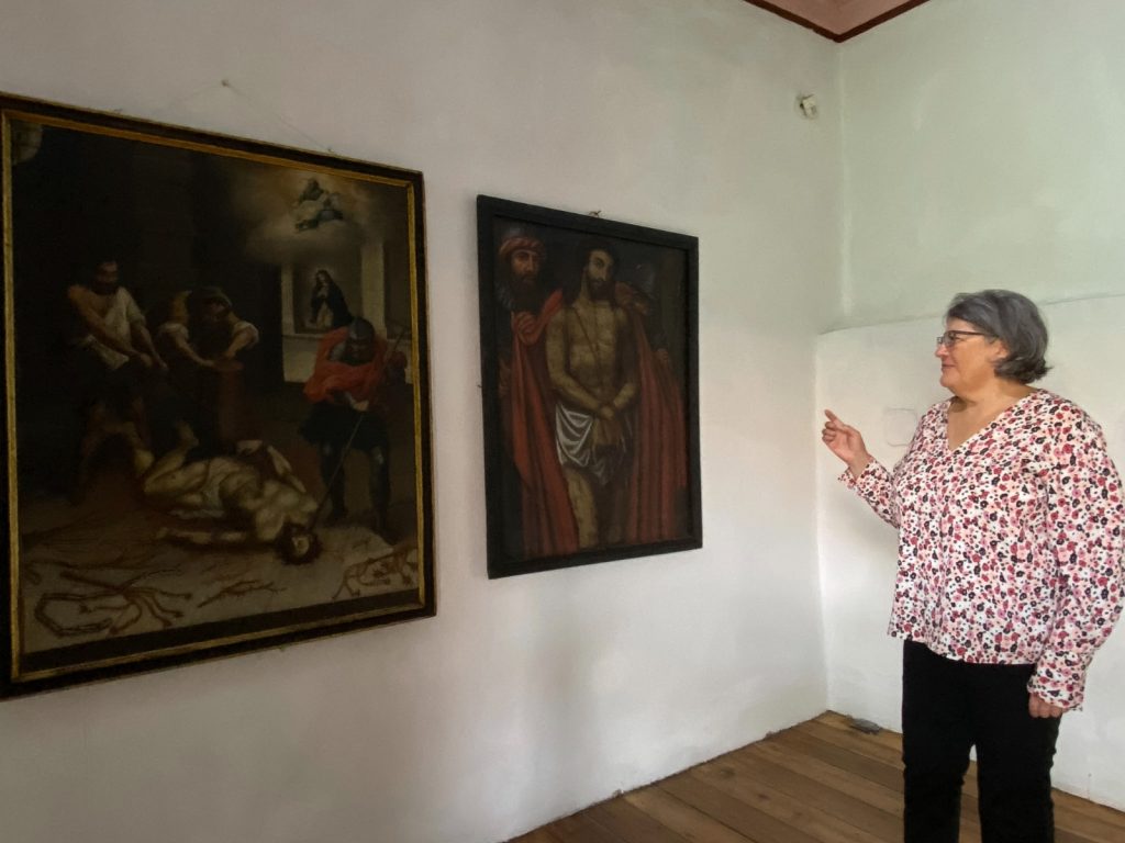 Natali Vázquez, coordinadora del Departamento de Turismo de la Arquidiócesis de Cuenca, explicó que la muestra reúne cerca de 30 obras entre esculturas, pinturas, textiles y libros corales.