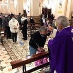 Los fieles católicos acuden a recibir la ceniza, que este año se coloca en la cabeza