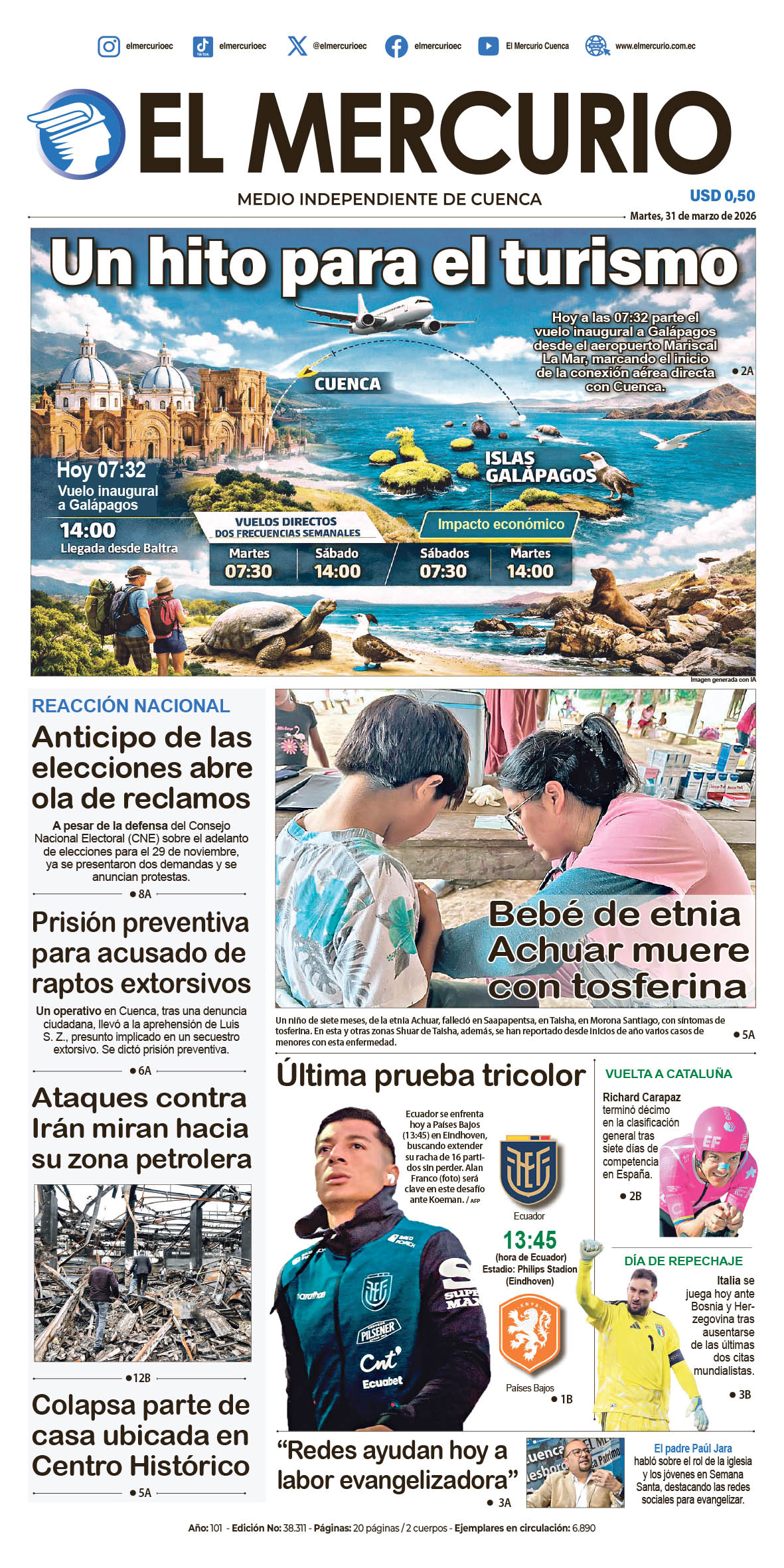 El año 2025, nos ha dado alegrías, estamos con vida, Ecuador clasificó por quinta ocasión a la Copa del Mundo 2026, ha sido para nuestro futbol el año de mas brillo internacional con representantes ecuatorianos en cuadros europeos, así como varios deportes y sus practicantes, en competencias hasta de carácter mundial, exhibiendo orgullosamente la tricolor. Éxitos en el 2026, para mis amables lectores. (O)