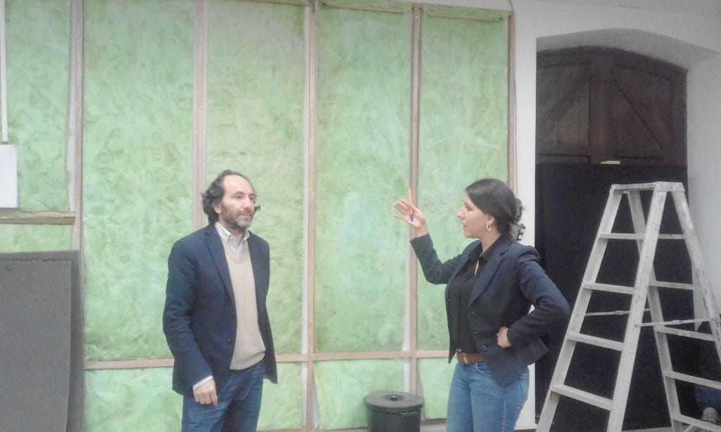Las adecuaciones actuales incluyen la división de las paredes mediante marcos, dentro de las cuales se ha colocado un material especial: lana de fibra de vidrio, que será recubierto con esponja y madera y esta protegida con laca.
