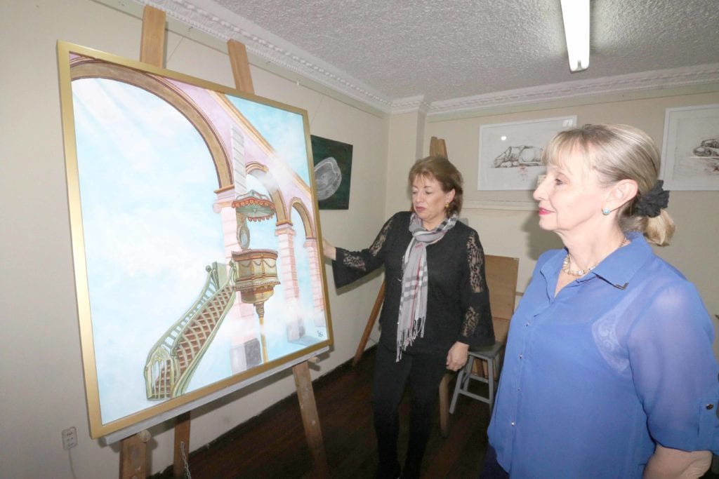 Las artistas nos hemos apropiado de la arquitectura de algunos templos de la ciudad y reinterpretado según la concepción artística de cada una, explican Ana Patricia Monsalve y Silvia Elena Peña, dos de las participantes.