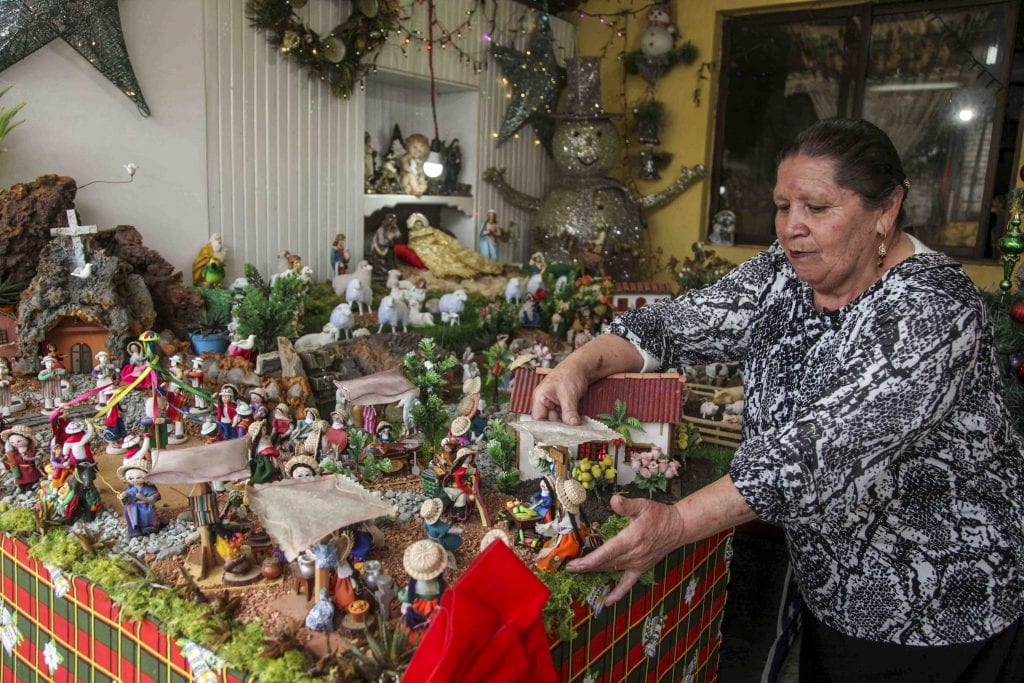 Gloria Vivar acomoda las figuras del pesebre. Xavier Caivinagua/El Mercurio