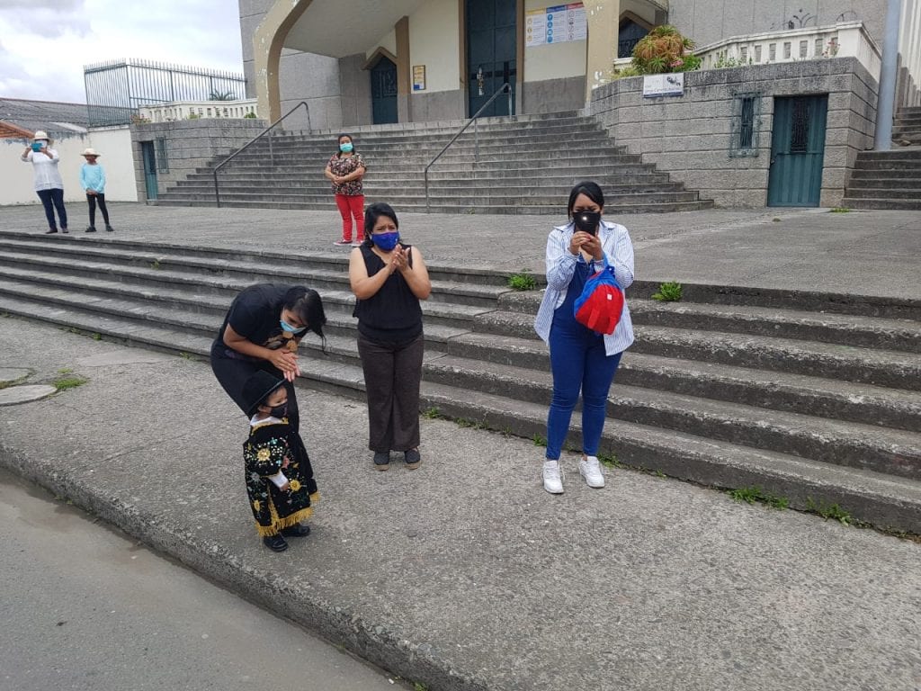 Mientras se cumplía el sobrevuelo, algunos fieles empezaron a llegar a la Catedral de la Inmaculada, en donde se desarrolló la misa. Allá llegó la imagen, en brazos de los padrinos, los miembros del Ejército.