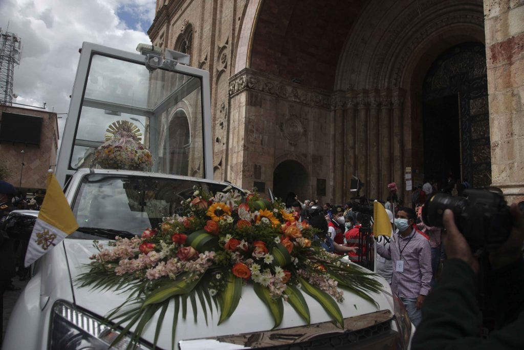 En el centro, una gran cantidad de personas se colocó en las aceras para mirar la caravana. En algunos lugares, las personas salieron a los balcones o a la calle para recibir la bendición. Había flores, niños con trajes y otras muestras de fe.