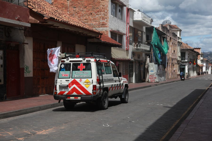 Una ambulancia recorre una calle céntrica de Cuenca. Xavier Caivinagua/El Mercurio