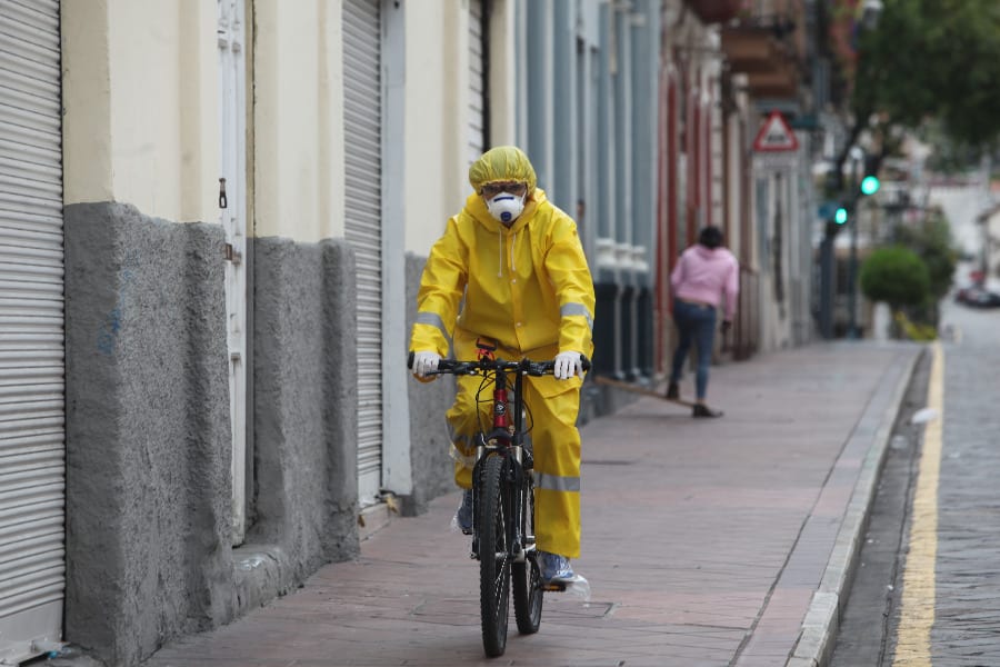 Algunos ciudadanos empezaron a usar trajes de bioseguridad. Xavier Caivinagua/El Mercurio