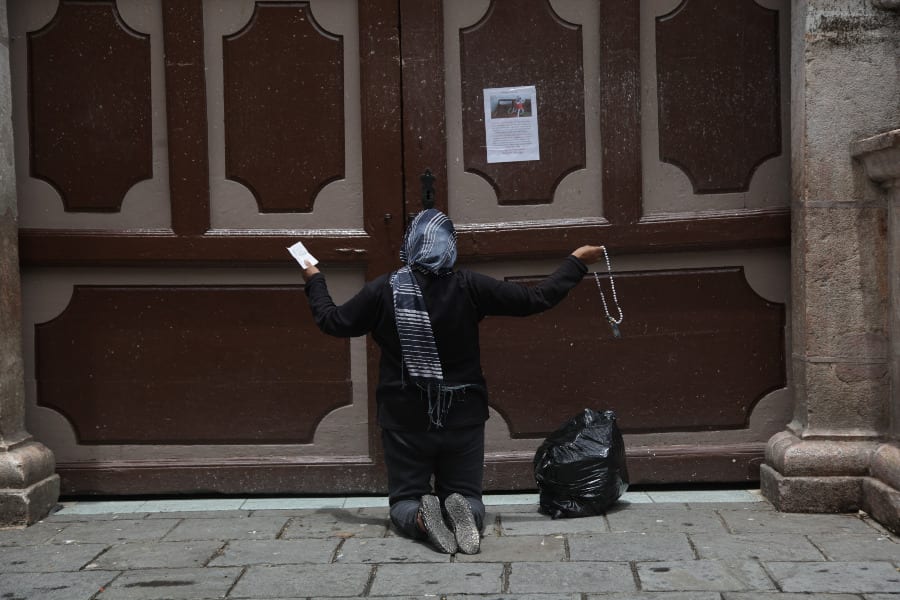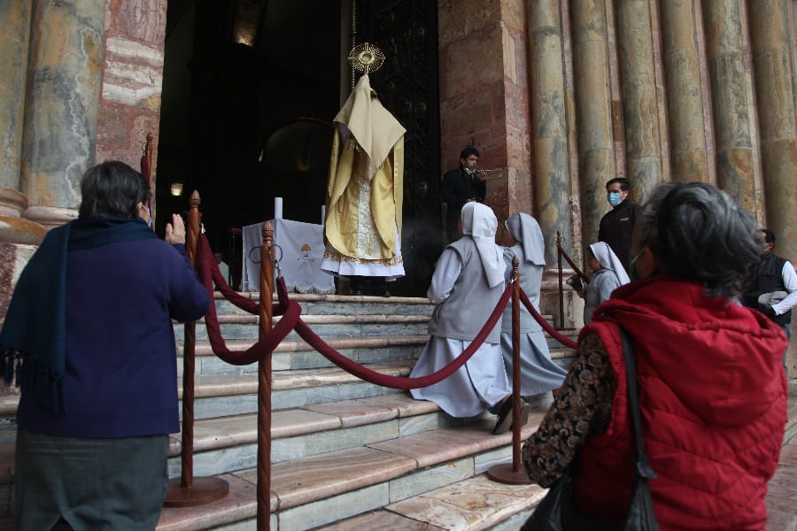 En Semana Santa no se pudo llevar a cabo la tradicional misa del día viernes, este fue el acto que se desarrolló en su lugar. Al principio, las medidas eran muy estrictas y en los espacios de uso público incluso desinfectaban a las personas. Xavier Caivinagua/El Mercurio