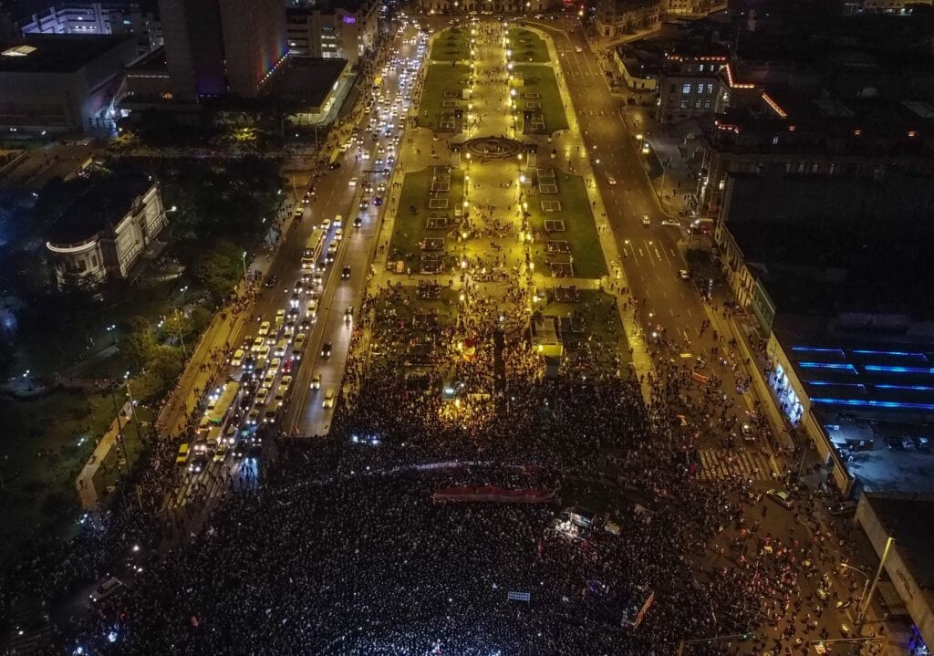 Fujimori lideró durante la noche del sábado un mitin ante miles de ciudadanos que antes marcharon por el centro histórico de Lima para manifestar su rechazo al «fraude en mesa», exigir que los pedidos de anulación de votos se analicen en audiencias públicas y remarcar que esta es una lucha entre «la libertad y el comunismo».