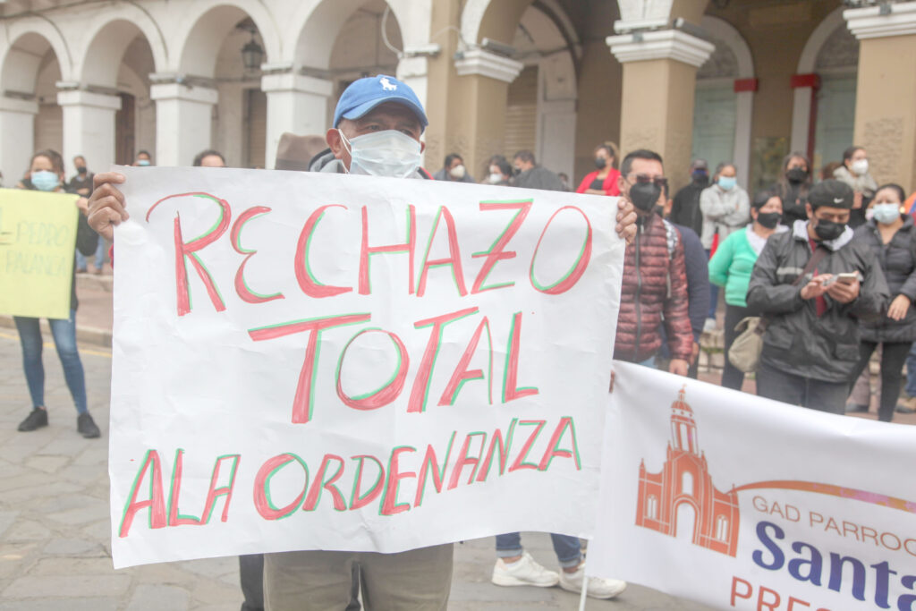 Los manifestantes solicitan suspender la ordenanza y recuerdan que los 21 GADs parroquiales han solicitado la derogatoria e igualmente, 11 de los 15 concejales piden su suspensión. Ante ello, se ratifican en plantón y resistencia, como una medida progresiva, hasta que la ordenanza sea derogada.